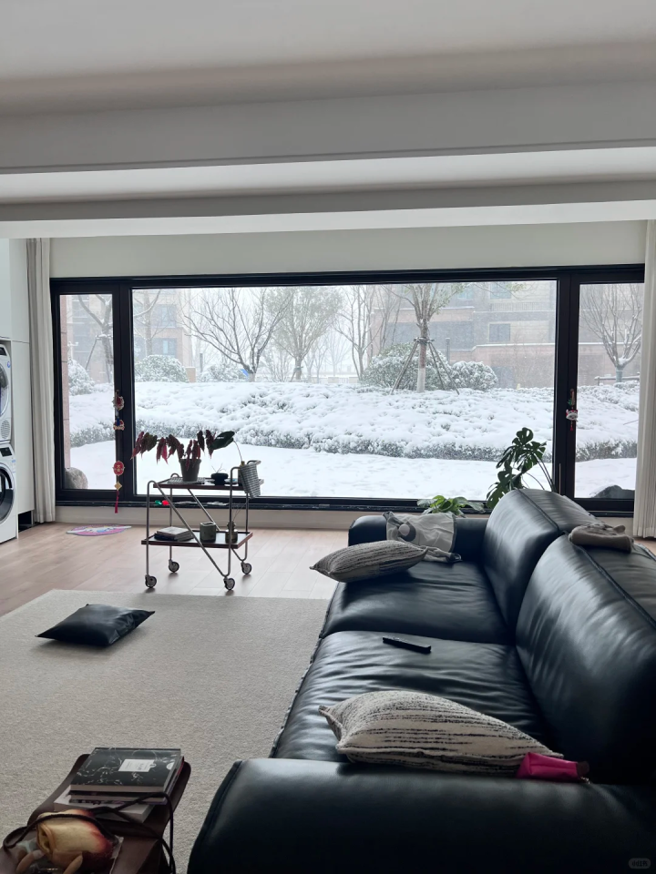窗户一定要选择"超大落地窗",既能增加家中的装修设计个性,同时还能开阔窗景,让窗外的风景根据四季不同的文化。